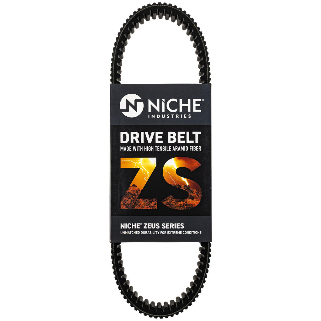NICHE ZEUS Drive Belt Width: 1.47 Inch (37.34mm) Length: 42.68 Inch (1084mm) Outside Circumference: 43.82 Inch (1113mm) Reinforcement Material: Very High Grade Aramid - High Loading Cord Pattern: Aerospace Grade Aramid Cord - Very High Strength Belt Material: EPDM - High Temperature Range - High Weathering Resistance - High Wear Resistance Horsepower Rating: 150-800HP Temperature Rating (C)-40?F to +284?F